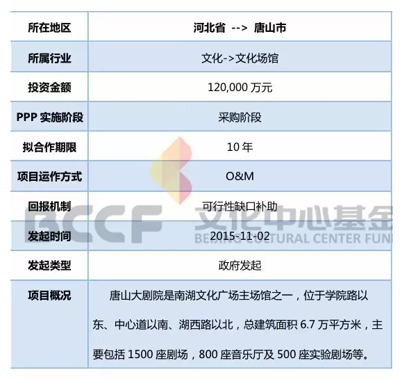 在《文化部辦公廳關于做好第三批政府與社會資本合作示范項目申報篩選工作的補充通知》的利好政策之下,10月中旬,財政部會同19部委公布了第三批政府和社會資本合作示范項目,河北省唐山市唐山大劇院、松北新城綜合場館等多個文化類項目成功入選。作為一種新型項目融資模式,PPP正影響著文化產(chǎn)業(yè)的融資格局。文化類PPP項目現(xiàn)狀如何?有哪些案例可供我們借鑒?文化中心基金為您梳理。