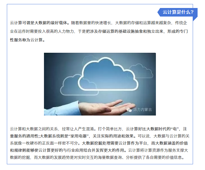 近一個時期,內蒙古自治區(qū)黨委、政府綜合分析內蒙古的發(fā)展優(yōu)勢和發(fā)展條件,明確提出要把云計算、大數(shù)據(jù)產業(yè)作為內蒙古培育戰(zhàn)略性新興產業(yè)的主攻方向,打造世界級的大數(shù)據(jù)產業(yè)中心。