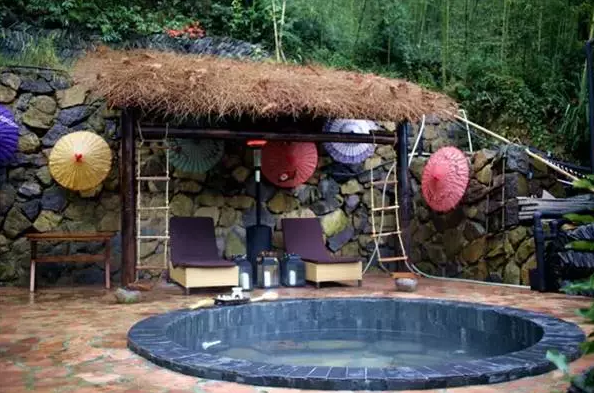 坐浴在熱湯之中,以紅酒、香檳配小食,或是沏一壺莫干山特色高山茶,再與三五好友慢慢暢聊。