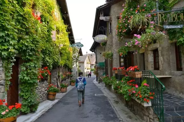 法國(guó)小鎮(zhèn)依瓦利又被稱(chēng)為石頭城,鎮(zhèn)上大多數(shù)房子都是用石頭建成,保存完好。鎮(zhèn)上的小徑兩旁、小石屋的窗前被五彩鮮花所簇?fù)怼?