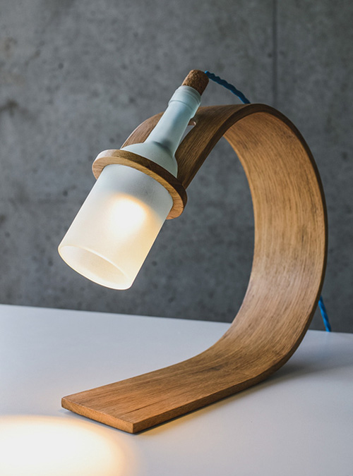 Quercus 是一款以環(huán)保和廢物回收利用為出發(fā)點的臺燈,無論是材料,還是能耗,還是回收,都實踐了從「搖籃到墳墓」的設計理念。這款臺燈包括一個用切開的葡萄酒瓶的上半部分做成的燈罩,磨砂效果讓燈光更加柔和;采用一體化設計的燈座用從當?shù)鼗厥盏膹U木頭做成,采用彎曲木工藝處理,在高溫下用蒸汽蒸并彎曲,然后定型;光源為一個 LED 燈泡。唯一用到的粘合材料就是將彎曲的燈座和卡住燈罩的木質圓環(huán)連接在一起的膠水。