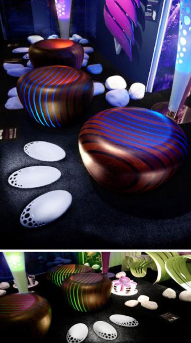 Giancarlo Zema設計集團出品的具有夢幻效果的木凳LED燈。他們將木頭柔和而清晰的線條和最新科技元素進行了融合。