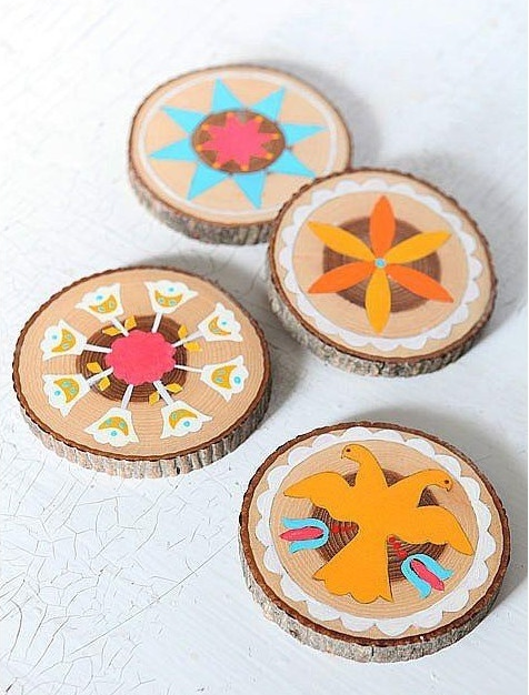 也可以將木截面組合在一起,制作出特性的形狀的圖案。