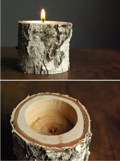 木質蠟燭臺,撿個木頭,挖個洞,營造浪漫氣息哦~