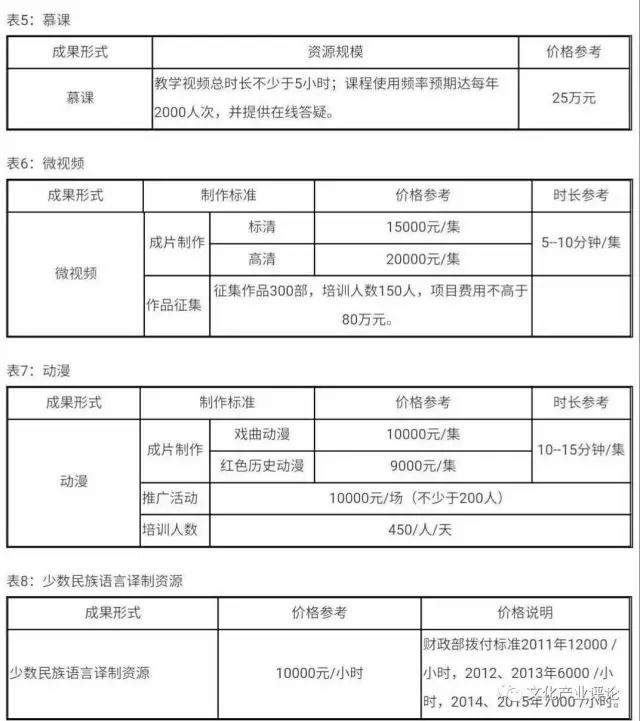 (3)參考全國文化信息資源共享工程2011年度地方資源建設(shè)工作指南地方資源建設(shè)價(jià)格參考標(biāo)準(zhǔn)、市場(chǎng)價(jià)格浮動(dòng)情況及近幾年各地在實(shí)際工作中的反饋情況,制定2018年度地方資源建設(shè)價(jià)格參考標(biāo)準(zhǔn)。(見表1、表2、表3)