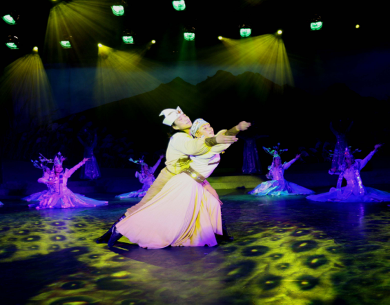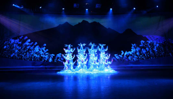 二、項目主要內容:1.改造舞臺面積847.8㎡;2.改造觀眾席面積為900㎡;3.新增2套面光系統(tǒng)、頂光系統(tǒng)、逆光系統(tǒng)、側光系統(tǒng)、追光系統(tǒng);改造2套效果燈系統(tǒng);3.更換音響15臺;4.新增道具500套;5.新增舞美特技4個;6.新增服裝1000套;更換LED顯示屏1個(8m*15m);9.制作LED顯示屏內容?!兑淮祢湣び肋h的成吉思汗》演藝內容主要包括三場,即《英雄的崛起》、《文明的交融》、《永恒的祭奠》。