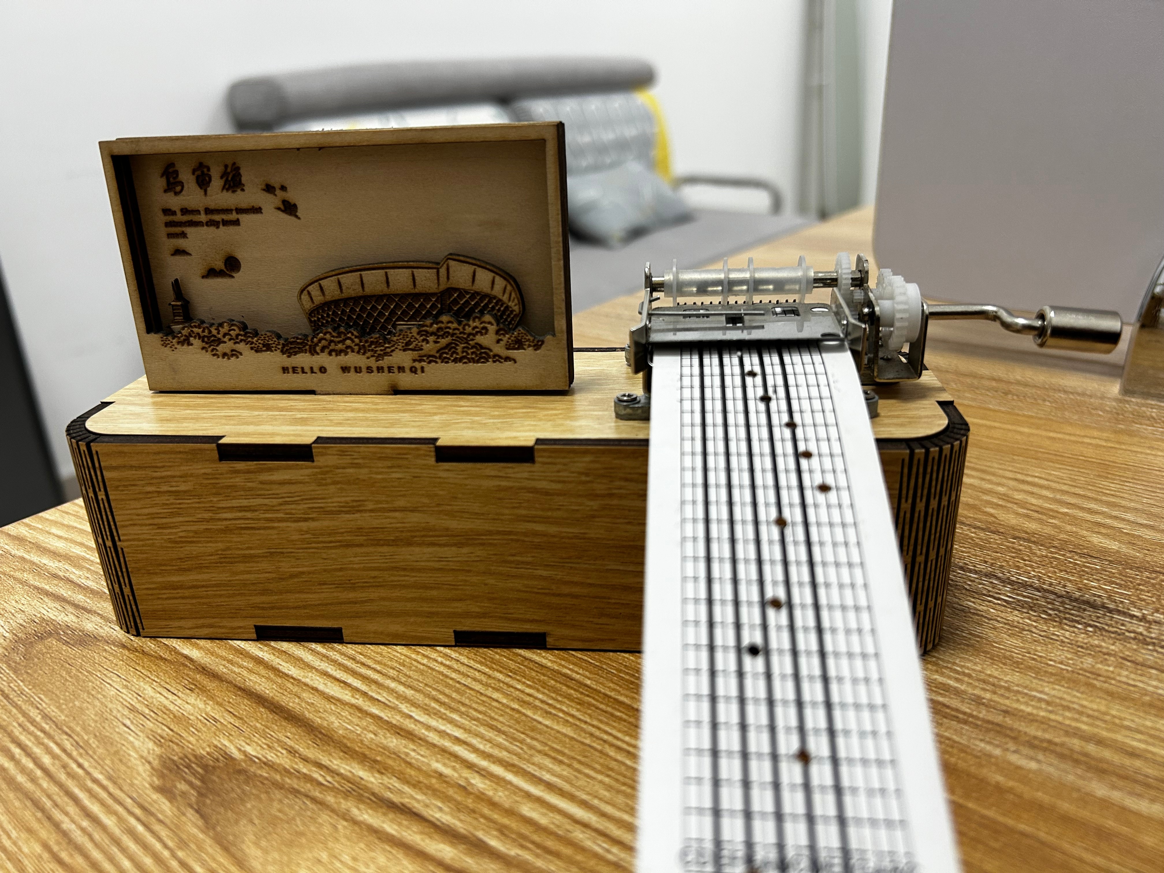 產(chǎn)品功能:手搖紙帶譜能演奏出悠揚(yáng)的鄂爾多斯民歌,作品兼具觀賞性藝術(shù)性操作性
