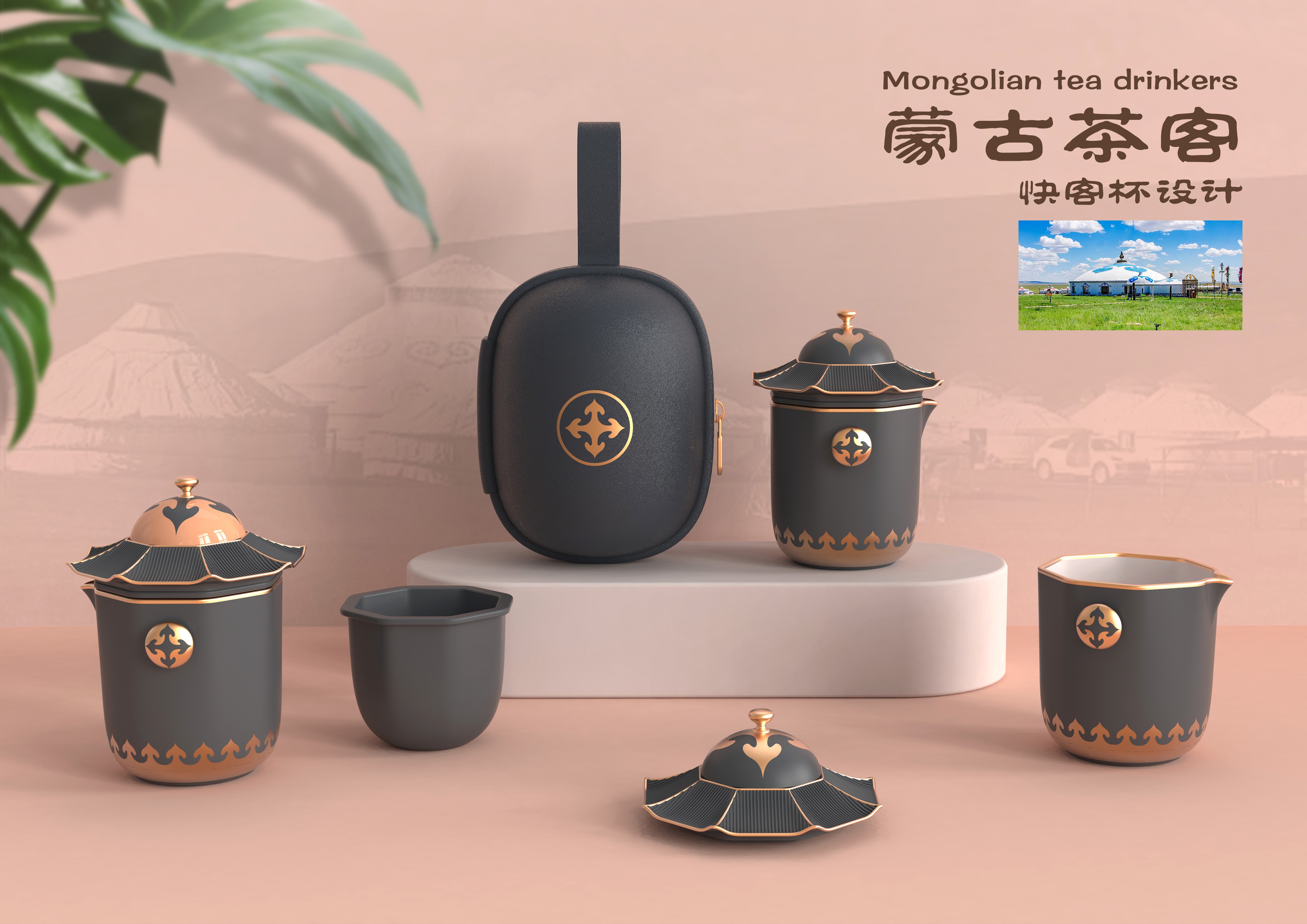 這款茶具的設(shè)計釆用了蒙古包的造型元素而設(shè)