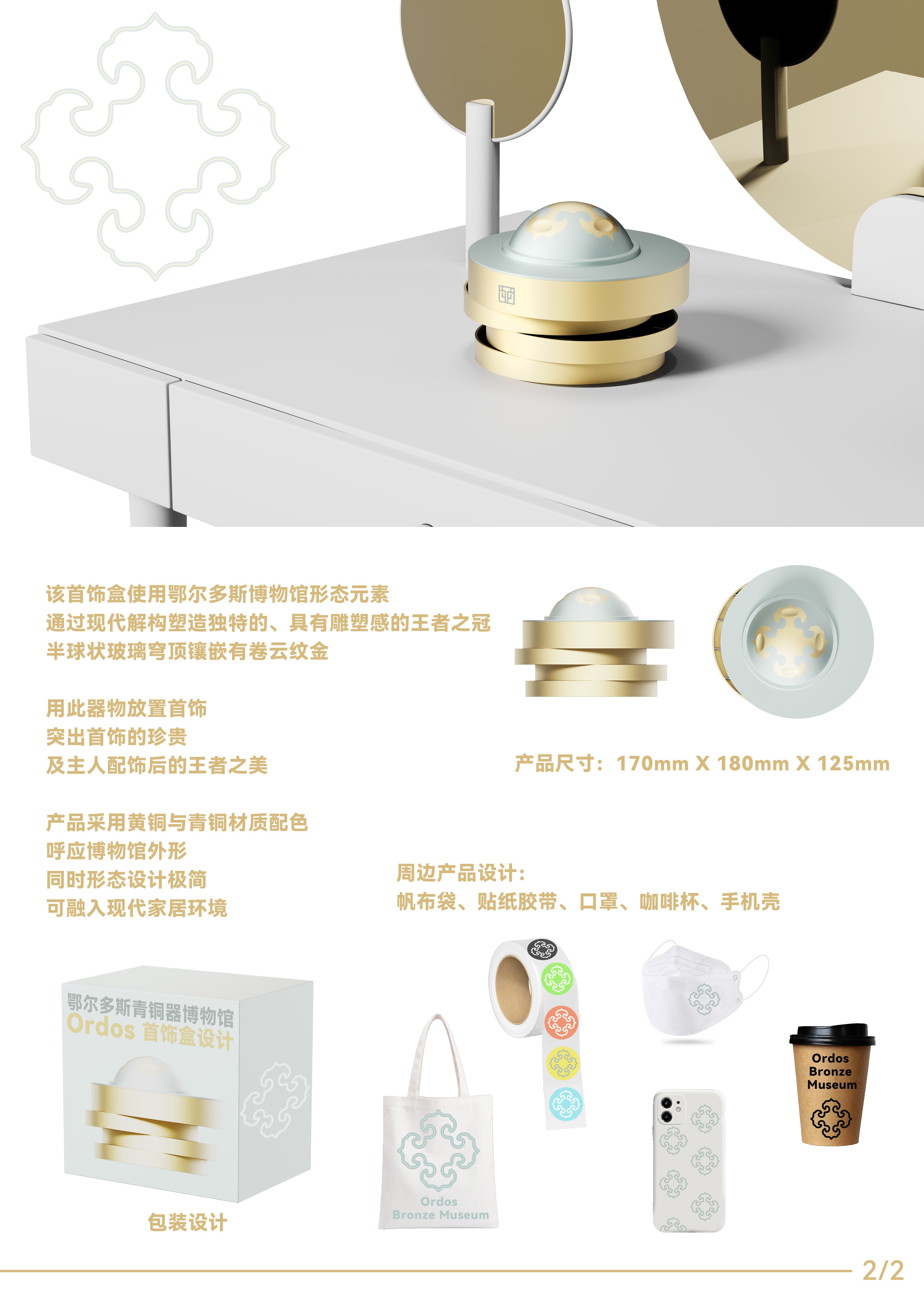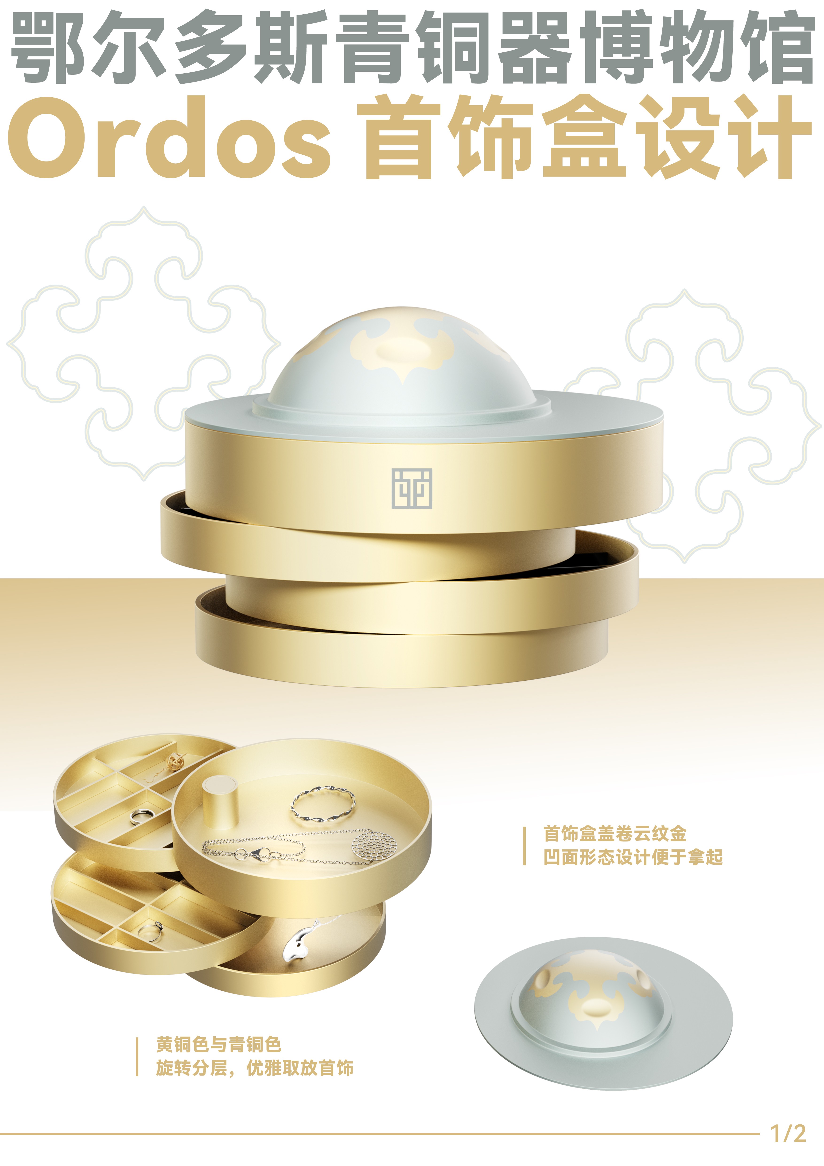 創(chuàng)作思路:將鄂爾多斯青銅器博物館形態(tài)與首飾盒結(jié)合