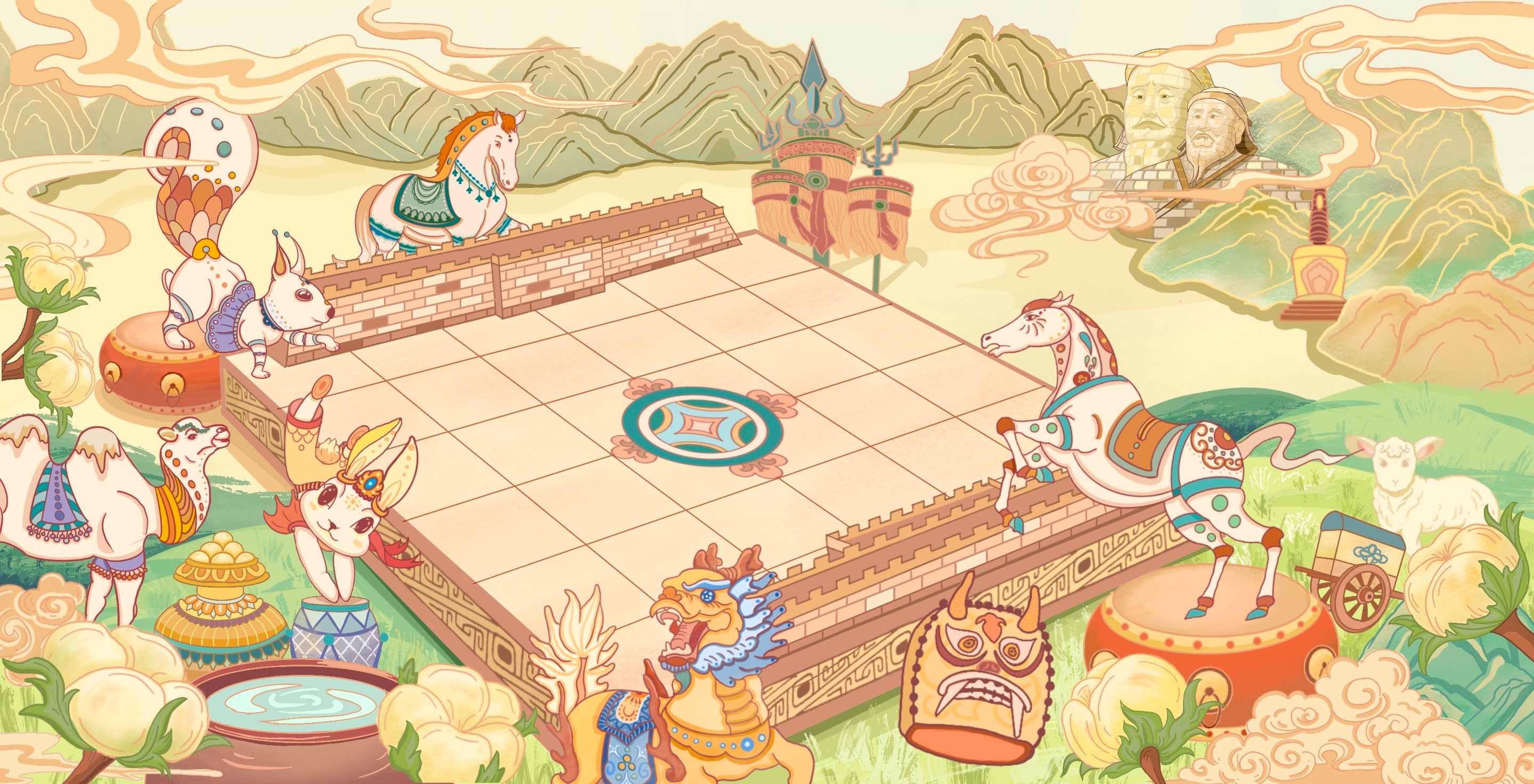 創(chuàng)作思路:作品利用蒙古象棋文化設(shè)計(jì)插畫(huà),將插畫(huà)運(yùn)用于文創(chuàng)。